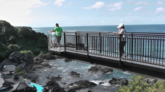 ↑能登半島先端の珠洲岬にある「スカイバード」は、下に支柱がなく、鳥になったような、スリルの味わえる展望台でした。