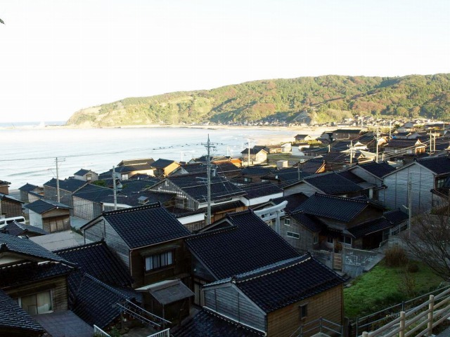 海沿いの町をずっと走りましたが、能登の民家特有の、黒い下見板張壁と黒い屋根瓦が印象的でした。