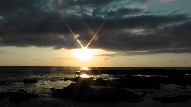 ↑洞窟のある巌門では、美しい夕日が見られました。
