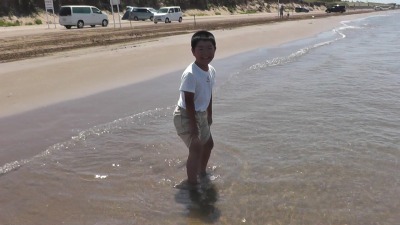 ドライブウェイ隣の千里浜海水浴場で泳ぎました。