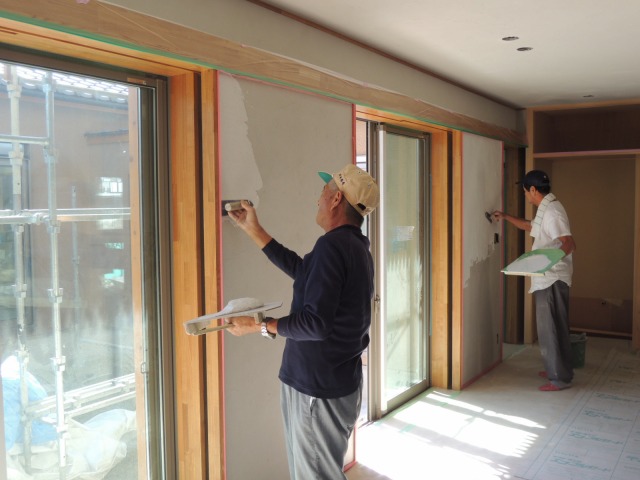 「回廊の家/岡崎」 中霧島壁の上塗り