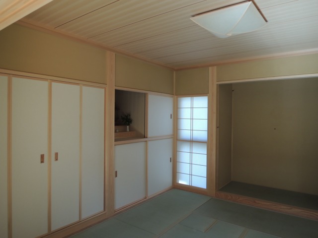 4枚折戸の仏間襖は、折りたたんで、仏壇の両脇に引き込み可能です。