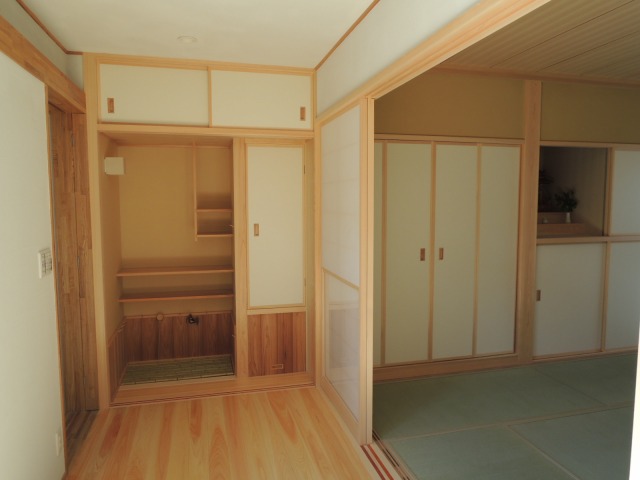 その2枚の襖は、水屋左脇の細長い収納にしまえます。