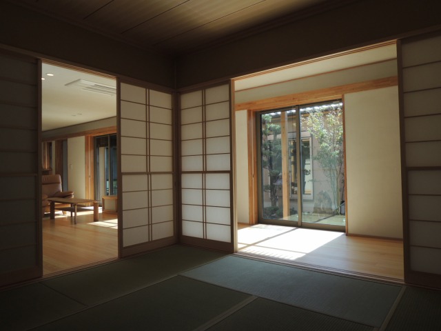↑大きなLDKとつながった和室からは、広縁ごしに、和風庭園の中庭1が眺められます。