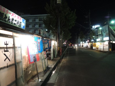 ↑そこで、那珂川沿いの屋台街へ行って、「焼ラーメン」を食べました。
