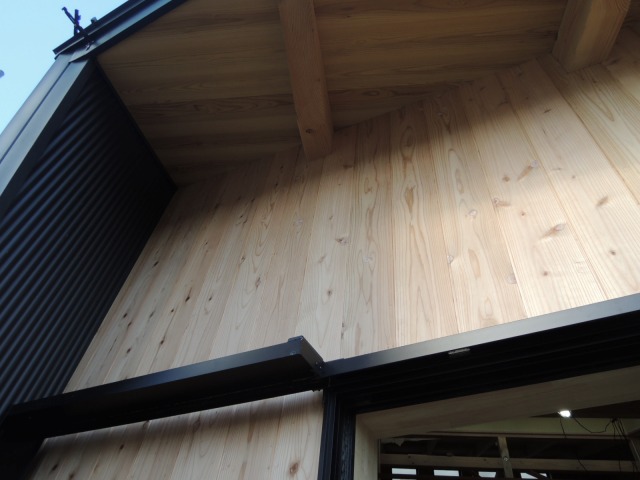 「大屋根光庭の家/蒲郡」 南外壁杉板張り&木摺張り