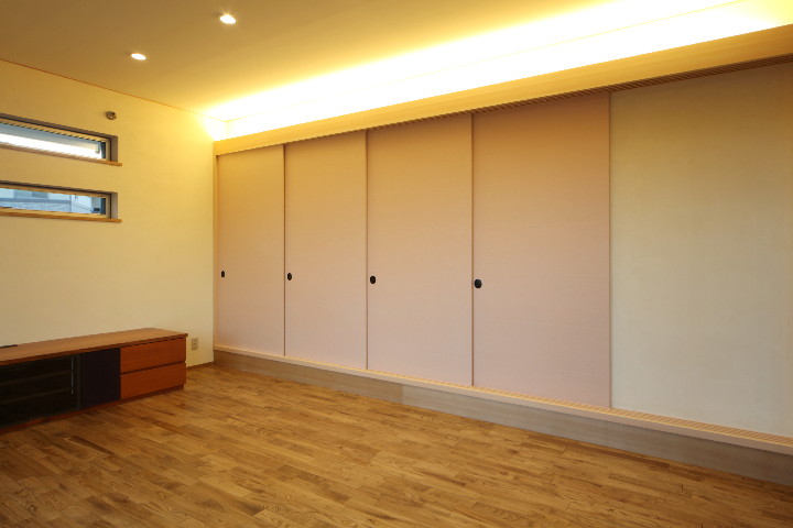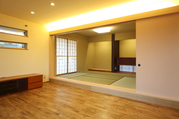 私たちの設計では、家全体が和風の家でもそうではない家でも、リビングに隣接する「続き和室」や「畳コーナー」を、障子や襖で仕切ることが多いです。