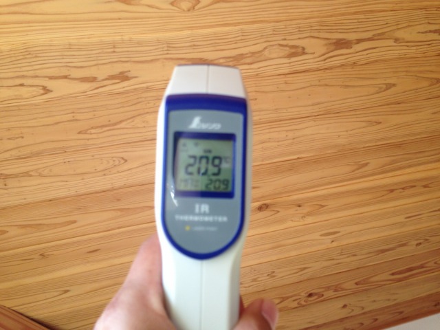 ↑天井(無垢の杉板)は20.9℃。