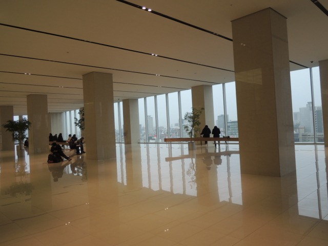 ↑巨大な展望ロビー。この日は雨でしたが、超高層ビル群を眺められました。