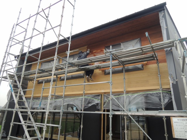 「囲む家/安城」 南外壁杉板ドイツ製自然塗装(プラネットカラー)