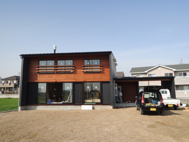 こちらの家では、この家と逆で、南面が、少し西へ向いています。