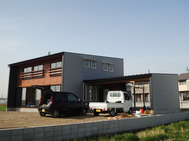 敷地の長手方向に対し、真南の方位が、東へずれているので、普通に南面を直角にすると、少し西へ家が向いてしまうのです。