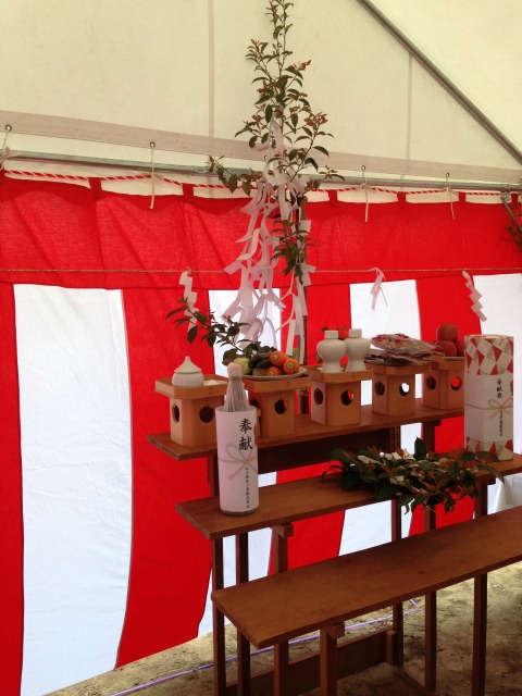 工務店が用意してくれた、テントに紅白幕があったおかげで、無事、終わりました。
