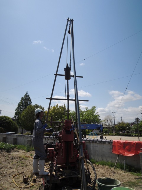 ↑ボーリング調査中。正確には標準貫入試験と言います。