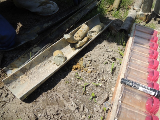 ↑10mまで、1mごとに土を採取して、右の透明ケースに入れます。
