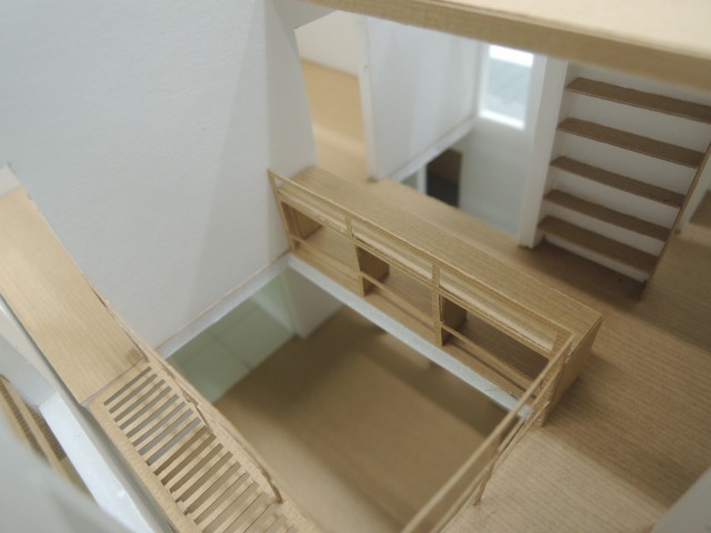 吹抜南側は吹抜縁と呼ぶすのこ床になっていて、光と風を1階へ通します。