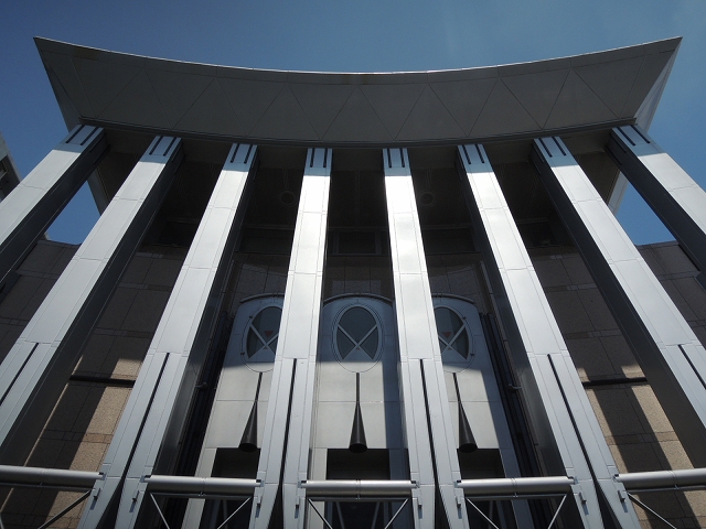 ↑このあたりのオブジェのようなデザインが、当時の高松伸さんらしいデザインのひとつです。