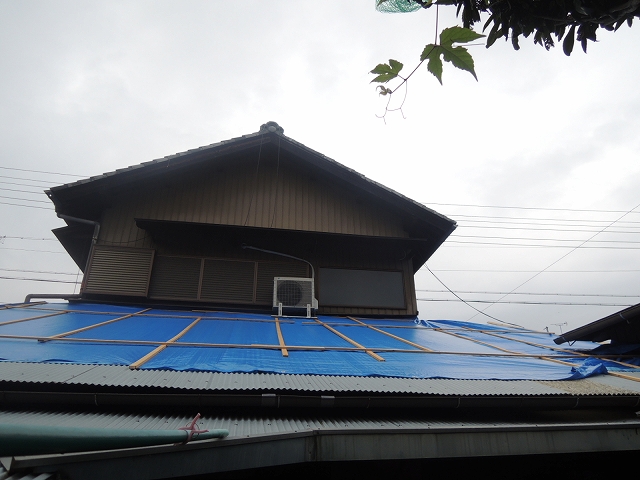 屋根勾配を緩く変えないと、浴室が納まらないため、手始めの解体工事として、屋根瓦を撤去しました。