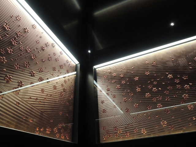 ↑4基あるエレベーター内の壁は、春夏秋冬の4つのデザインがされており、上りは春、下りは秋のデザインでした。