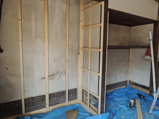 「(仮称)土岐の家リフォーム」 耐震ボードの下地組み