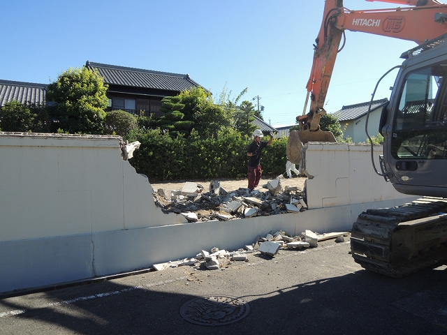 ↑塀壊し中。