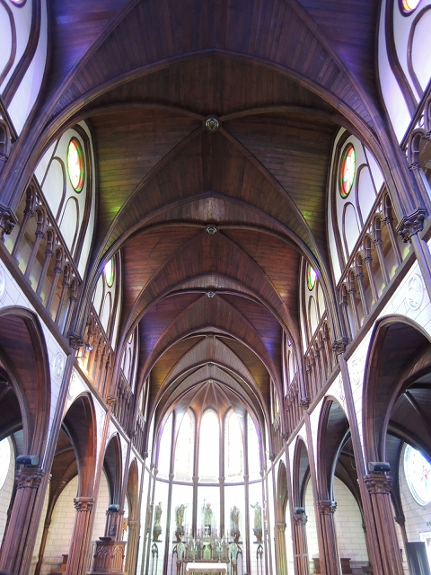 ↑↓ステンドグラスの光が美しい聖ザビエル天主堂。