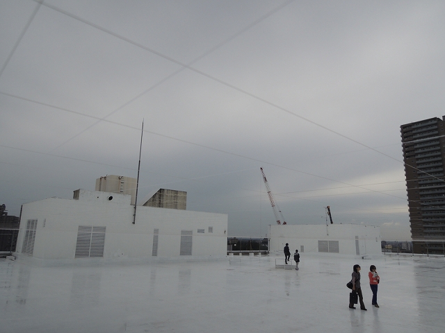 ↑↓白一色で塗られた屋上を覆うように、白いネットが頭上の低い位置に張られていて、見えるけど見えないというのが、覆われているけど、覆われて感じないという感覚につながり、おもしろい体験でした。