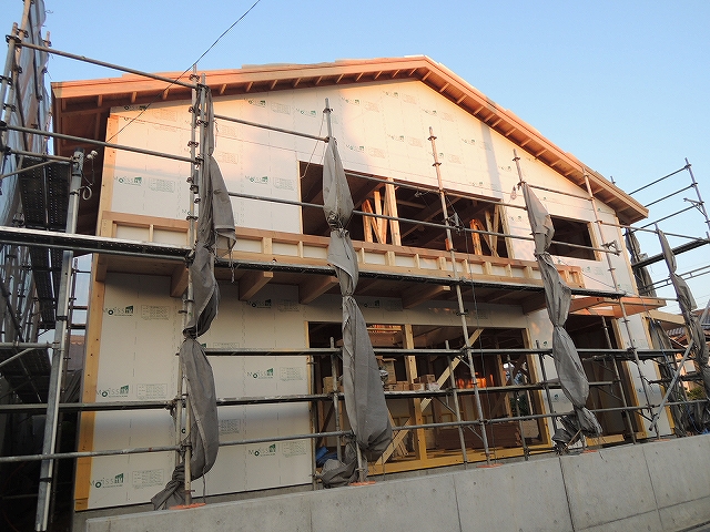 「集まる家/刈谷」 耐力面材のモイスTM張り&屋根遮熱透湿防水シート張り