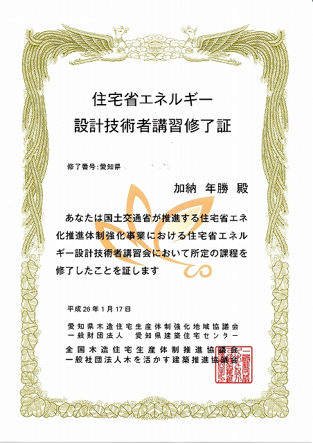 安城市民会館で、国土交通省主催の住宅省エネルギー施工技術講習会(設計技術者向け)に参加しました。