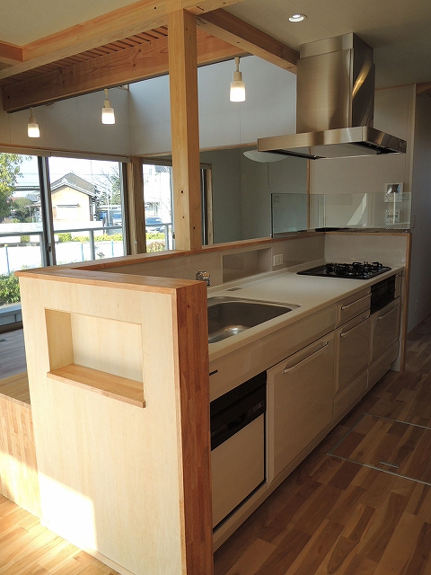 手元隠し壁にはニッチ(凹み)を設けて、調味帳などが置けます。