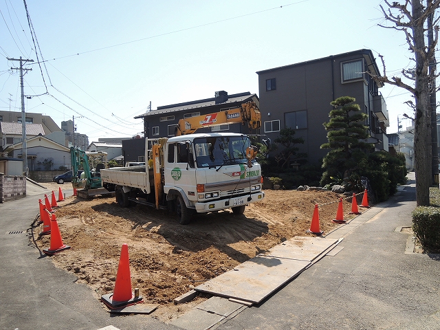 「通る家/岡崎」の旧居解体工事が先週終わりましたが、今週から、造園屋さんによる造園解体工事が始まりました。