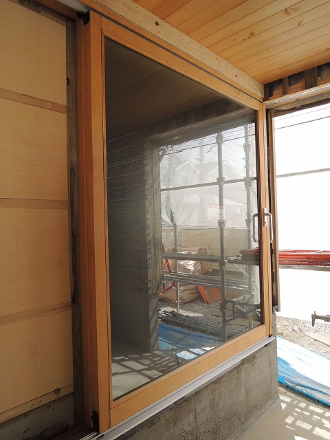 大きな建具ですが、動きが軽くて、とてもなめらかでした。私たちがよく採用するドイツ製自然塗料のプラネットカラーが塗装されています。