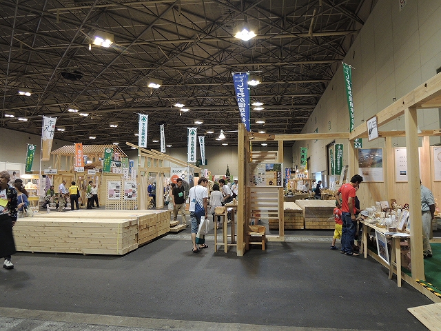 ↑2号館は、「木と住まいのパビリオン」とし、木材関連の建材メーカーの出展などがありました。