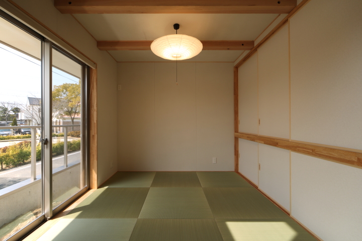 続き和室は、リビングとのデザイン的な違和感のないモダンな半帖へりなし畳です。