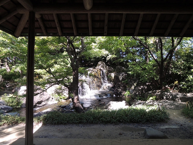↑庭園内で一番高い位置にある築山を「御嶽山」からの滝。