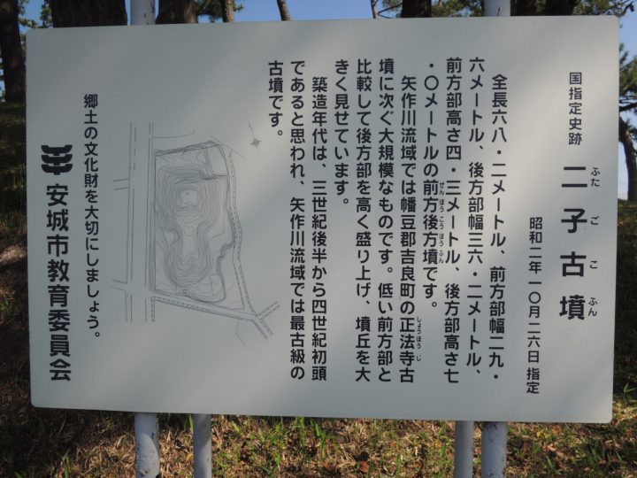安城市の西部には、古墳群がいくつかあるのですが、そのうちの最大規模であり、矢作川流域では、正法寺古墳(西尾市吉良町)に次ぐ2番目の規模の、桜井町近くの二子古墳を見学しました。