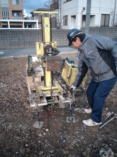 建物の解体が終わったので、地盤調査の立会いをしました。