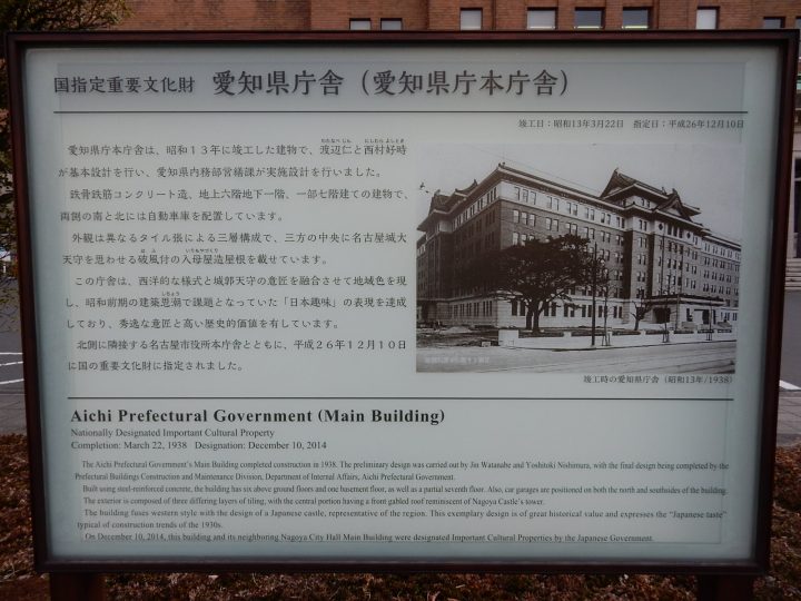 愛知県庁舎は北隣に建つ、名古屋市役所とともに、平成26年に国の重要文化財に指定されました。