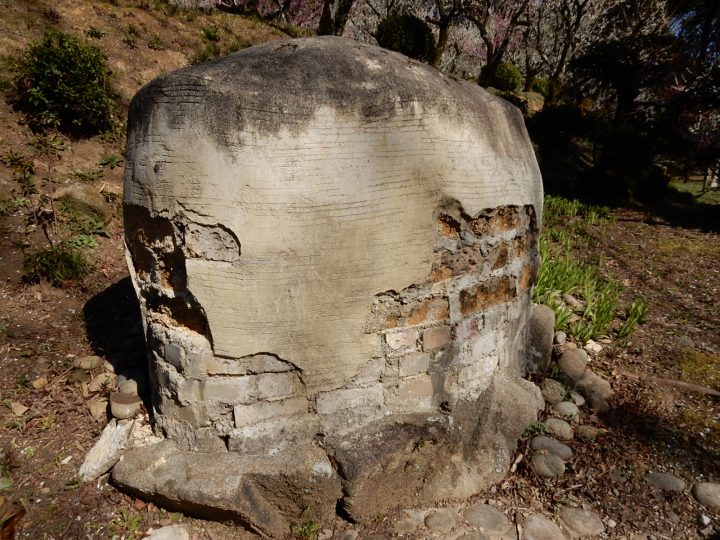 三河産の花崗岩が風化した、まさ土と消石灰を混ぜて、水中で固まり、強いという画期的な工法です。