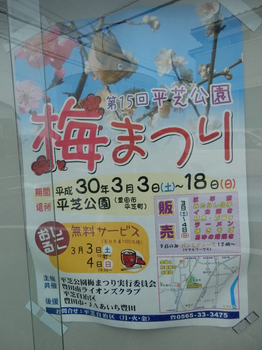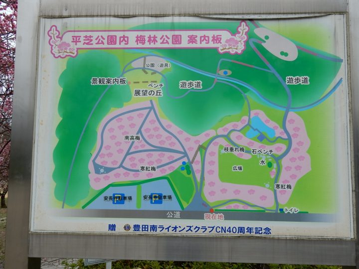 豊田市逢妻町で菜の花を見たあと、帰り道沿いにある、豊田市の平柴梅林公園へ。