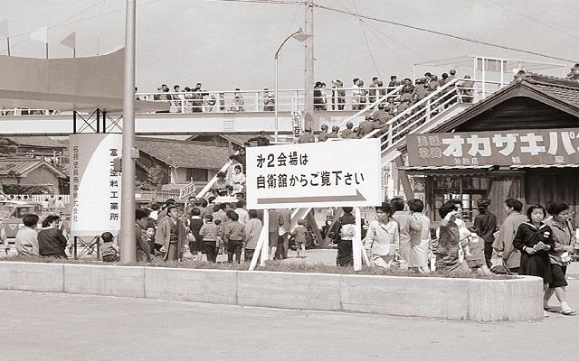 第1会場から第2会場への移動のため、国道一号上に日本で最初にかけられた陸橋を連日多くの観覧者が行きかった。会期中は天候不順にも関わらず、県内外から80数万人の観覧者を迎え、各館に陳列された地元工業製品・物産は、観光の岡崎と将来工業都市を標榜する本市の姿を広く天下に紹介する契機となった。