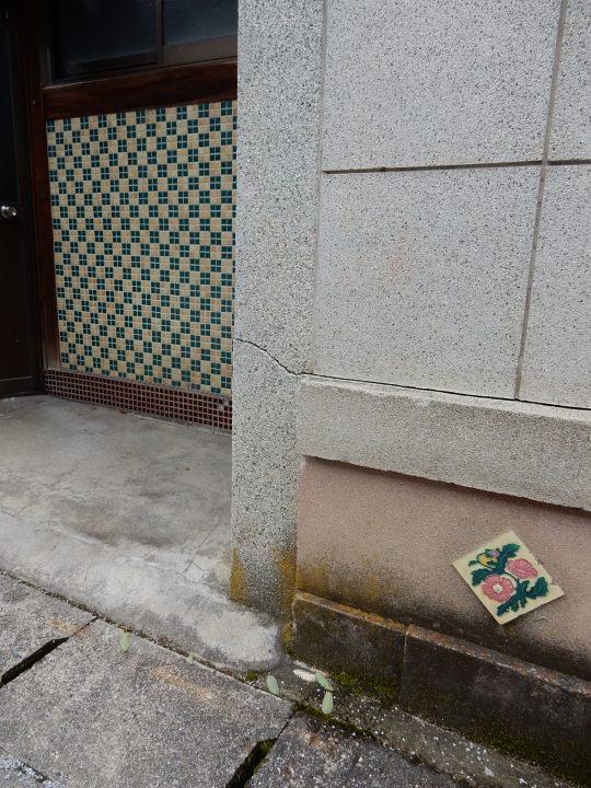 腰壁のモザイクタイルや花のワンポイントタイルがいい感じ。
