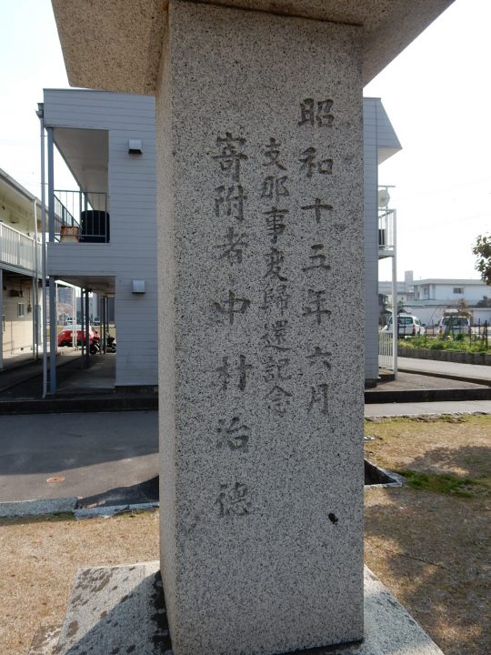 灯篭の裏には、昭和15年 支那事変帰還記念とあり、戦中に建てられたものです。