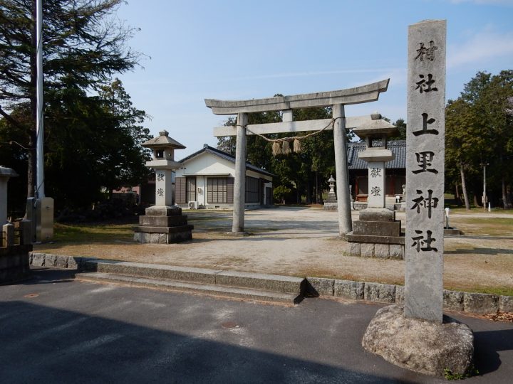 上里神社へ。村社です。岡崎市上里町字堤下1番地 (1889年まで旧額田郡上里村)