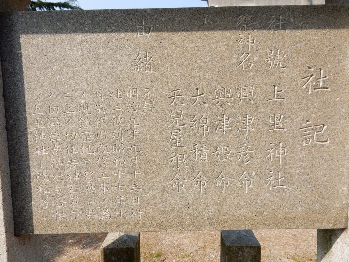 上ノ切 住吉神社と丁ノ切 興津彦神社を合祀し、上里神社に改名されました。2つとも堤防上にあったそうです。