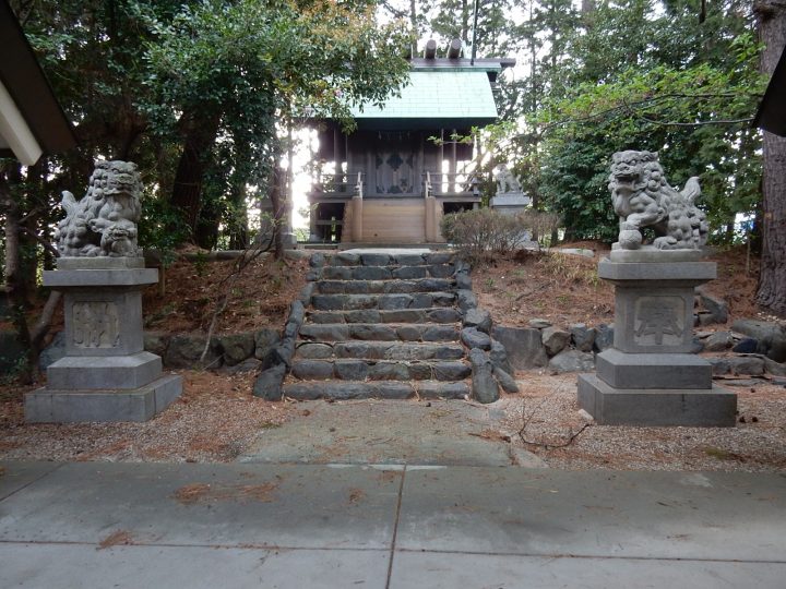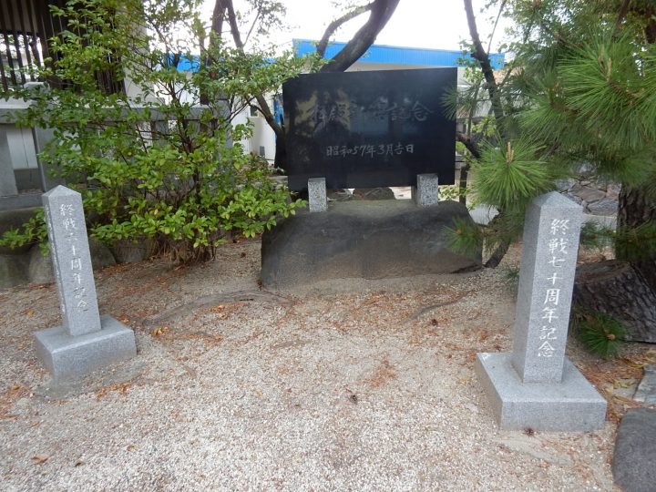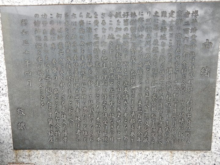 由緒碑。1955年(昭和30年)の創建の神社です。