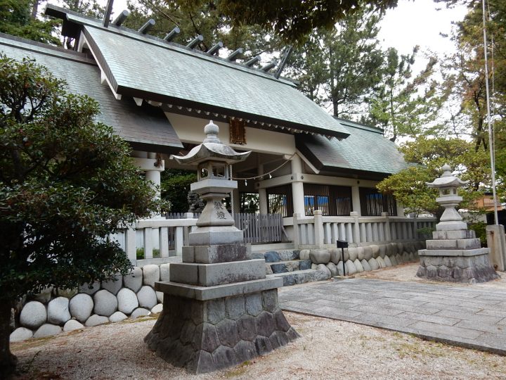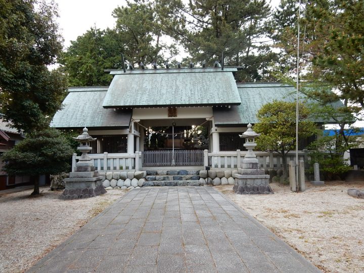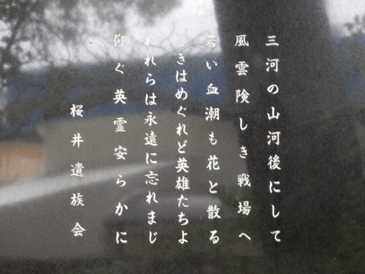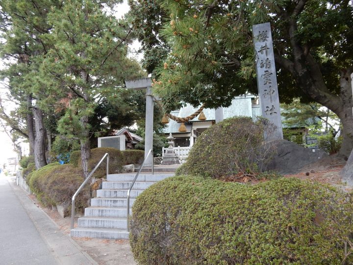 桜の名所の桜井城址(城山公園)の南道路をはさんだ、南側には、戦没者を祀るために創建された、櫻井靖霊神社があります。安城市桜井町城阿原51-3
