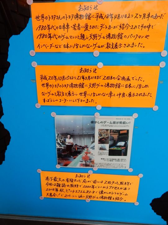 トヨタ博物館に、天野博物館のゲーム機が展示されたことや、TVや雑誌等の取材があったことを伝えるものです。