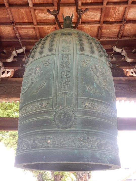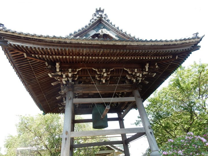 吊るされている鐘は中宮寺再興に尽力した、初代岡崎藩主・本多康重の妻・妙春尼(みょうしゅんに)の孫の妙怡尼(みょうたいに)よる寄進です。
