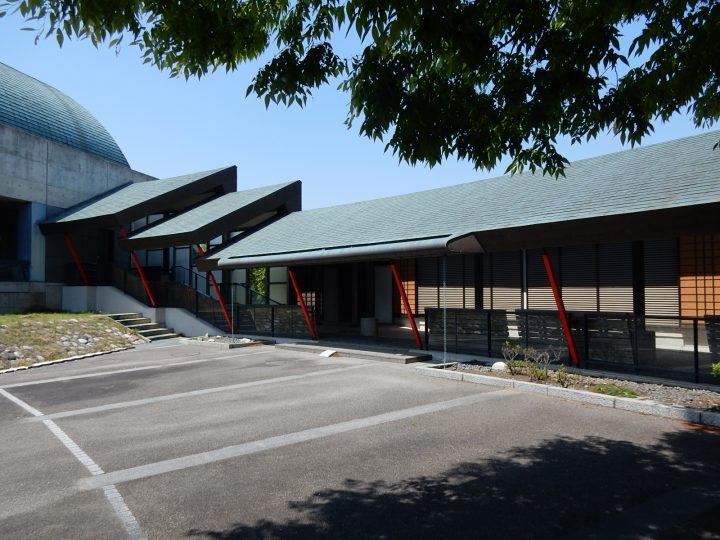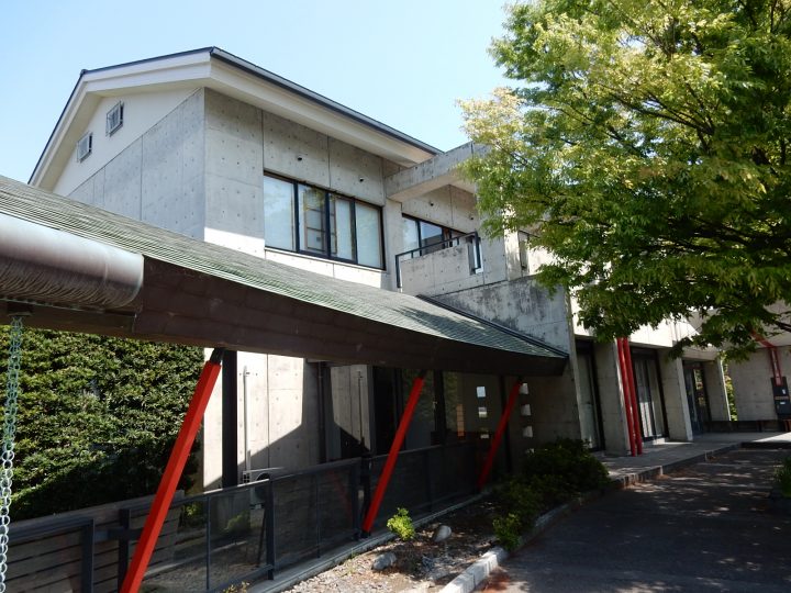 庫裏は、切妻屋根の現代建築デザインです。こちらもコンクリート打ち放しです。